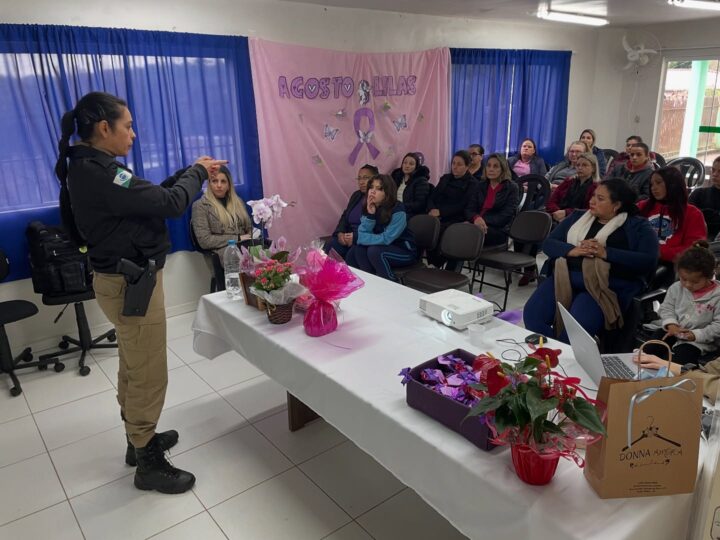 Nesta semana, a Secretaria de Assistência Social de Porto Vitória promoveu uma palestra com as policiais da Patrulha Maria da Penha, dentro da programação do Agosto Lilás, campanha de conscientização e enfrentamento à violência contra a mulher.