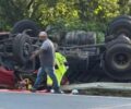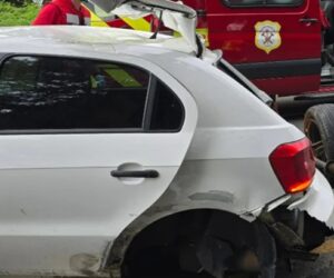 Veículo capota na SC-135 e motorista fica preso em Caçador