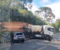 Caminhão sai da pista e tomba na PRC-280 entre Palmas e General Carneiro