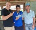 Renan Augusto Weschenfelder Tavares, premiado pela menor traíra do festival, medindo 18 centímetros.