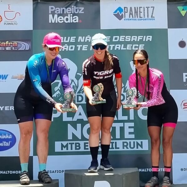 Fabiana Freisleben (ao centro) no pódio. (Foto: reprodução).