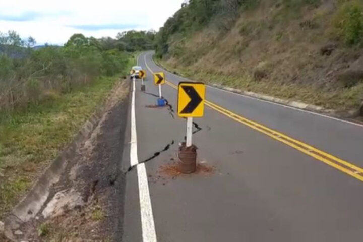 Este tipo de problema já foi observado em anos anteriores no trecho, causado pelo acúmulo de água no maciço rochoso sob a rodovia, e pode resultar em ruptura total da pista se não resolvido.