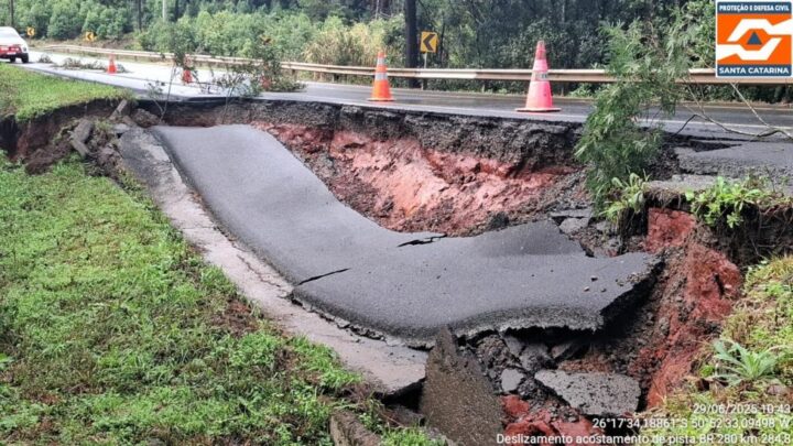 Obras na BR-280 que cedeu em Irineópolis deve ser finalizada em 45 dias