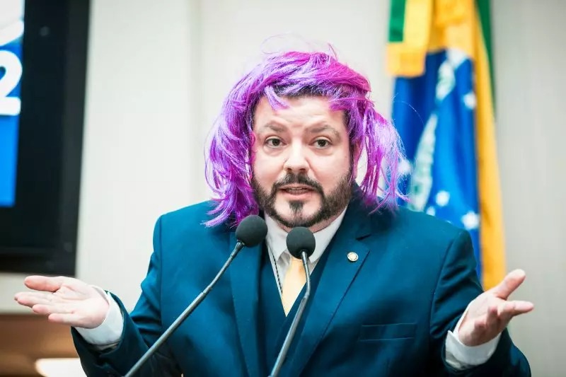 Não é exatamente o que fala (neste caso, também), mas como fala. O deputado estadual Alex Brasil (PL) resolveu criticar as vagas nas cotas destinadas para pessoas trans nos cursos das universidades públicas em Santa Catarina. E, para isso, usou em plena tribuna da Assembleia Legislativa de Santa Catarina, uma peruca, remetendo à caracterização de pessoas trans? Seria esse o intuito da peruca ou dar um ar de deboche para a pauta, desmoralizando os colegas que fossem contra o seu discurso? Não deu pra entender.