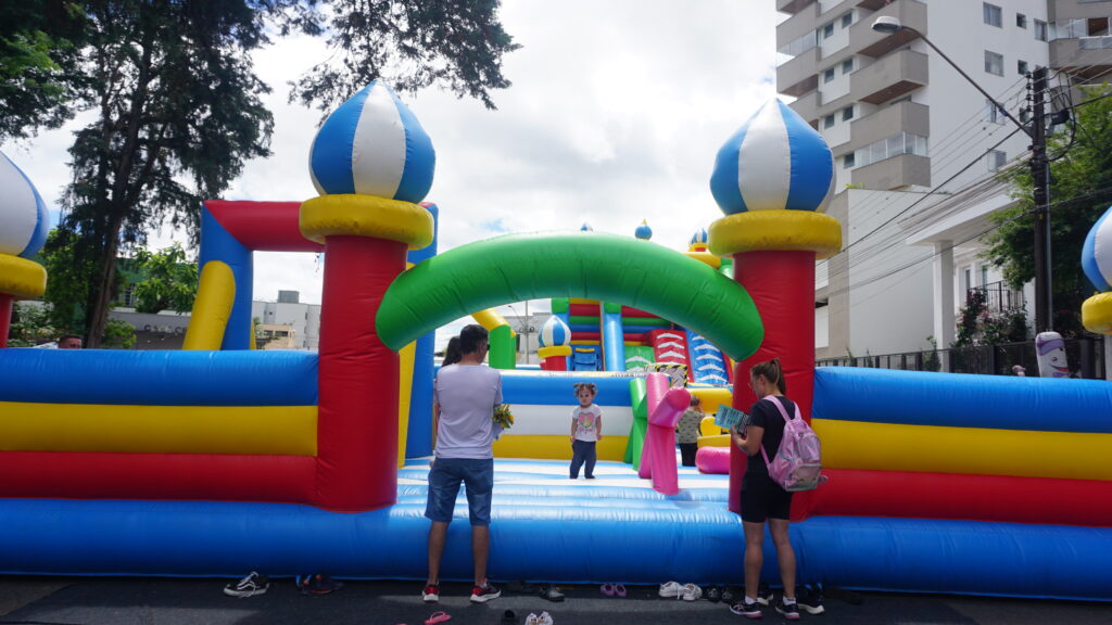 As crianças tiveram diversão garantida com brinquedos infláveis, playground e um simulador de montanha-russa que fez sucesso durante todo o dia.