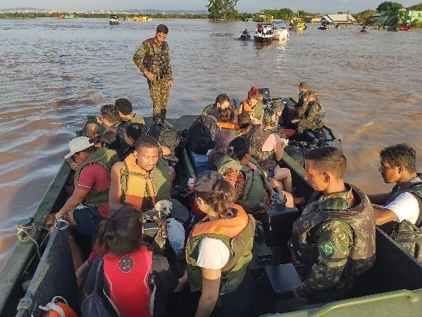 O 5º BE Cmb Bld partiu para o Rio Grande do Sul com uma equipe de 80 militares, cinco viaturas de 5 toneladas, 24 botes, uma ambulância, uma embarcação de manobra, uma carregadeira sobre rodas, uma retroescavadeira, um trator multiuso e dois caminhões basculantes, além de outros equipamentos.