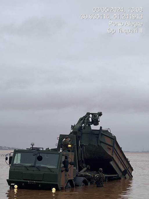 Em 04 de maio, o 5º BE Cmb Bld recebeu a missão de realizar o reconhecimento para lançamento de uma ponte de suporte logístico (Logistc Support Bridge – LSB) entre os municípios de Lajeado e Arroio do Meio. Foi neste momento que puderam perceber a verdadeira dimensão da crise no estado. “Bairros inteiros haviam desaparecido e um profundo sentimento de comoção tomava conta de todos e a sensação de incerteza do que ainda viria aumentava. Entretanto, estávamos confiantes de que tínhamos muito a contribuir nesse triste capítulo da história do Brasil e do Rio Grande do Sul, fruto das capacidades que tínhamos, da motivação e adestramento da tropa, além da disponibilidade de nossos meios”, relatou o Comandante do 5º BE Cmb Bld, Tenente-Coronel Diego da Silva Agostini.