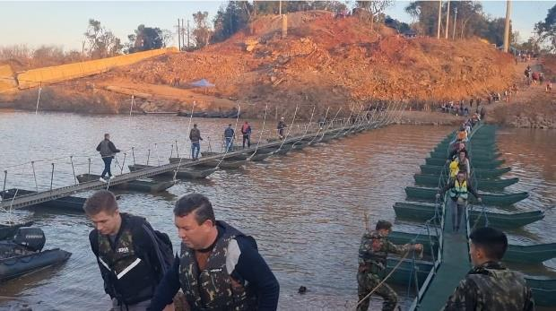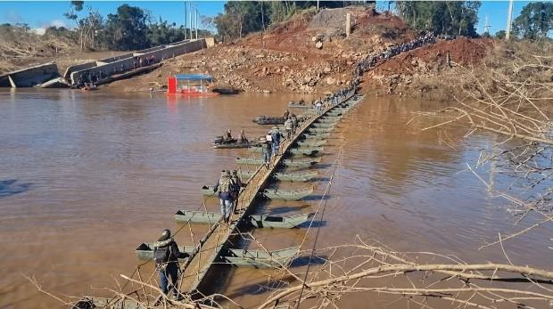 Na noite de 14 de maio, o 5º BE Cmb Bld realizou o lançamento de uma passadeira de aproximadamente 90 metros. “A vibração, entusiasmo e espírito de cumprimento de missão da tropa foram fundamentais para o restabelecimento da ligação entre os dois municípios. Antes da passadeira as opções [da população] eram apenas os botes, esperando longas filas, ou uma volta por estrada que durava em torno de 4 horas”, declarou o Tenente-Coronel Agostini. Na madrugada daquele dia, moradores já puderam transpor o rio Forqueta com auxílio da passadeira.