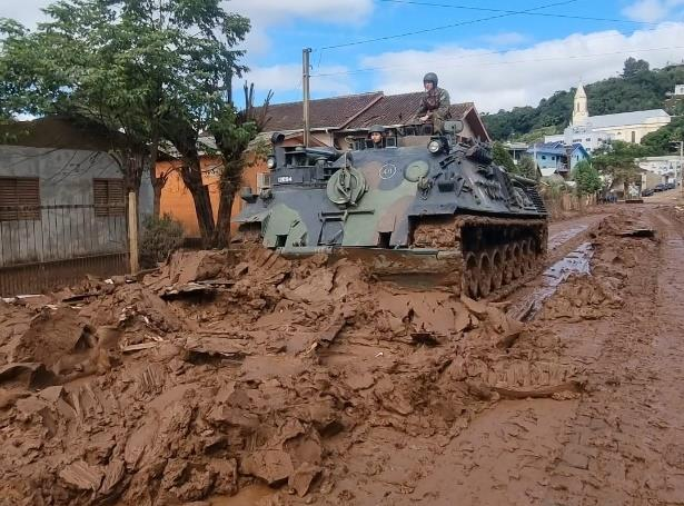 Em 1º de maio de 2024, data em que o 5º Batalhão de Engenharia de Combate Blindado (5º BE Cmb Bld) comemorou 111 anos, um chamado colocou as tropas em prontidão. Era por volta das 17h quando o General Pfaender, Comandante da 5ª Brigada de Cavalaria Blindada, acionou o 5º BE Cmb Bld para prestar apoio à Defesa Civil no Rio Grande do Sul, que estava sendo assolado por uma enchente histórica.