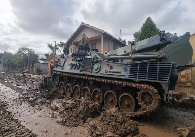 No primeiro dia do 5º BE Cmb Bld, as chuvas se intensificaram, e o Comandante da 5ª Brigada de Cavalaria Blindada, Gen Pfaender, determinou que a equipe ficasse de prontidão em pontos estratégicos. No dia seguinte, com a diminuição da precipitação, iniciou-se o trabalho de limpeza nas escolas.