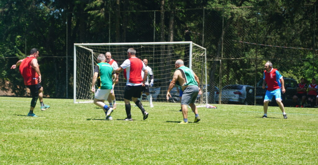 O encontro foi marcado por um jogo festivo, seguido de almoço de confraternização e música ao vivo com o artista Elton San, encerrando a temporada em clima de celebração e memória esportiva.