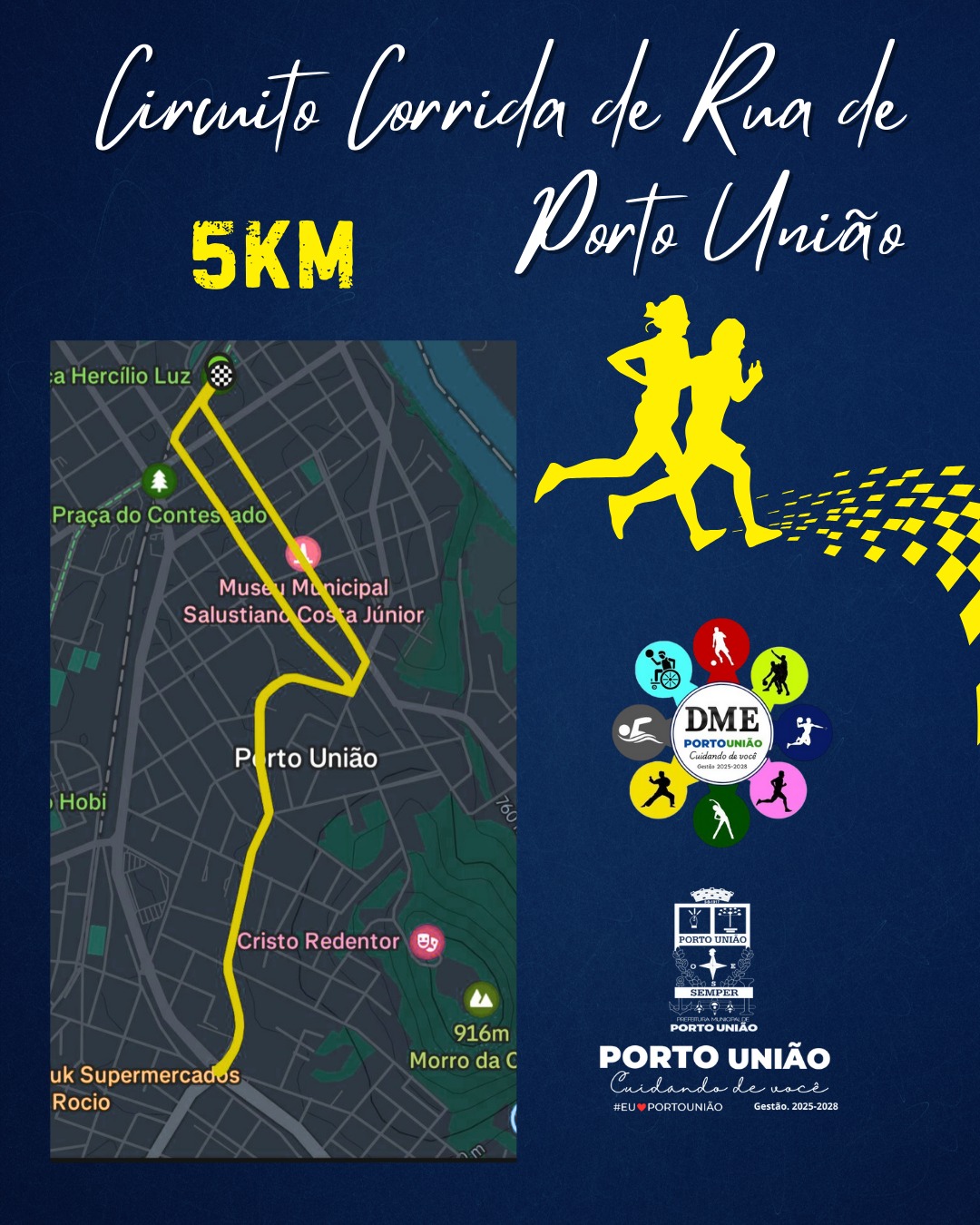 Estão abertas as inscrições para a 5ª etapa do Circuito de Corrida de Rua, marcada para o dia 14 de setembro, como parte das celebrações do aniversário de Porto União. A competição é promovida pela Secretaria de Administração e Esporte, por meio do Departamento Municipal de Esportes (DME).