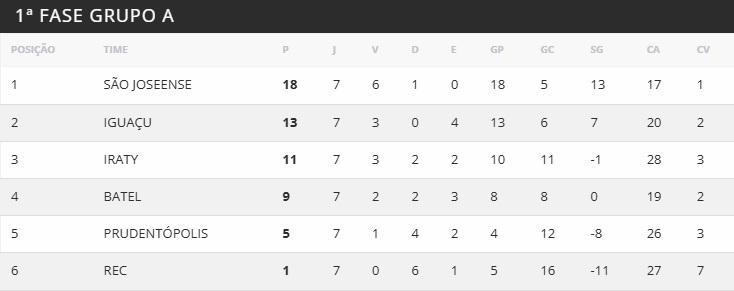O resultado mantém o Iguaçu na segunda colocação do grupo A, com 13 pontos, dois atrás do líder Independente São Joseense. Restam três rodadas para o fim da primeira fase da competição.