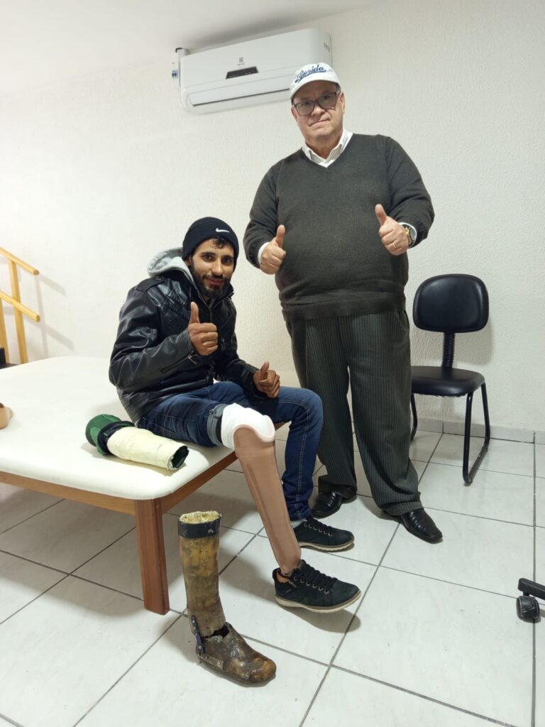 Assim que recebeu a foto, Romeu mobilizou contatos e, em poucas horas, confirmou que um amigo, o Doutor Marcos, ortopedista e proprietário da Ortopédica Excelência, em Sorocaba (SP), doaria uma prótese profissional ao jovem — totalmente gratuita.