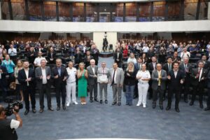 Em concorrida sessão solene no plenário da Assembleia Legislativa na terça-feira, 18, o Líder do Governo, deputado Hussein Bakri (PSD), homenageou os 90 anos da empresa pública Portos do Paraná. Além do aniversário comemorado neste mês de março, o parlamentar destacou que os portos de Paranaguá e Antonina formam hoje um dos mais importantes hubs logísticos da América Latina, têm a melhor gestão portuária do Brasil por cinco anos consecutivos e são referência internacional na conservação do meio ambiente.