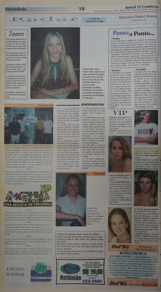 No começo do século, o jornal também servia como repositório oficial das fotos de Carnaval, como lembra Eduardo Carpinski, diretor-geral de jornalismo do Grupo Verde Vale de Comunicação, que à época era diagramador deste periódico. “A cobertura carnavalesca sempre foi intensa nas páginas de O Comércio. Até o início dos anos 2000, quando ainda não existiam as redes sociais, era nas páginas do jornal que se viam os “cliques mais curtidos” dos clubes locais. Marcelo Storck, titular da coluna Radar, e Divair Dalmas registravam o que acontecia de melhor nos clubes e blocos do Vale do Iguaçu. A edição seguinte sempre era muito procurada nas bancas. Tínhamos que aumentar a impressão para atender a procura enorme. Bons tempos”.