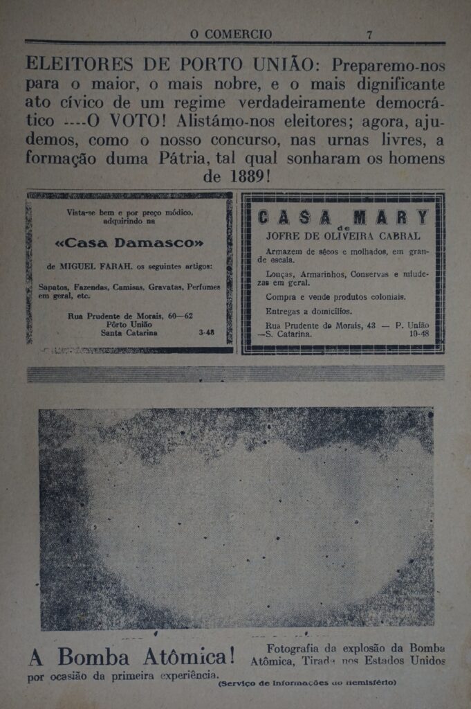 Como um jornal quase centenário, O Comércio noticiou a existência daquela nova arma. Em 16 de setembro de 1944, com um infográfico, explicou o poder de destruição da bomba atômica.