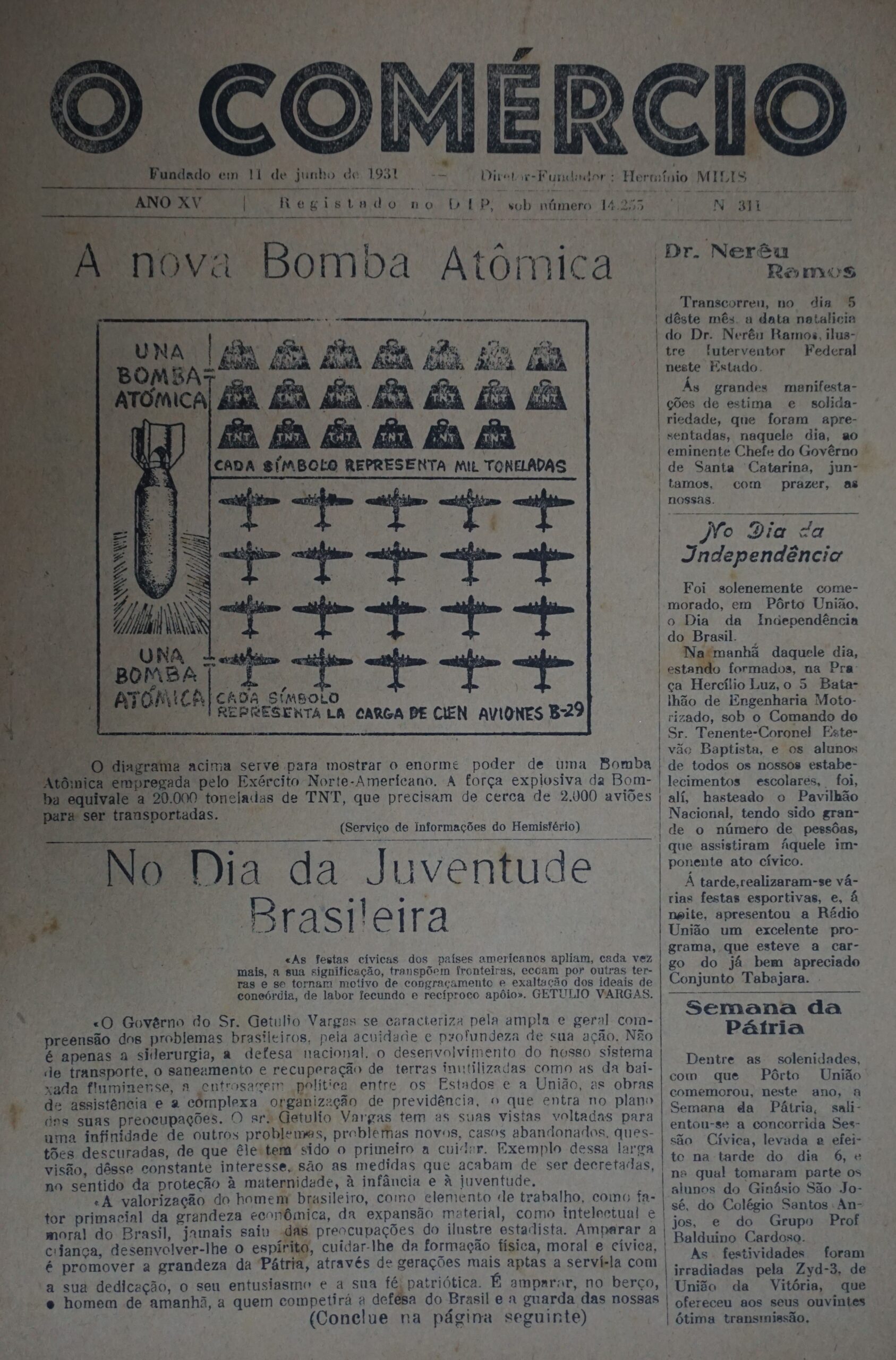 Como um jornal quase centenário, O Comércio noticiou a existência daquela nova arma. Em 16 de setembro de 1944, com um infográfico, explicou o poder de destruição da bomba atômica.