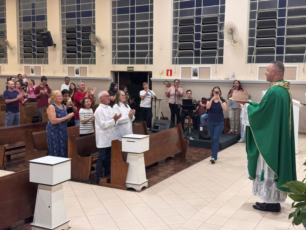 Durante a missa na Matriz Nossa Senhora da Salete em União da Vitória, o padre compartilhou com os fiéis o caminho inesperado que o levou à Igreja — um chamado que começou, curiosamente, com um bolo de chocolate.
