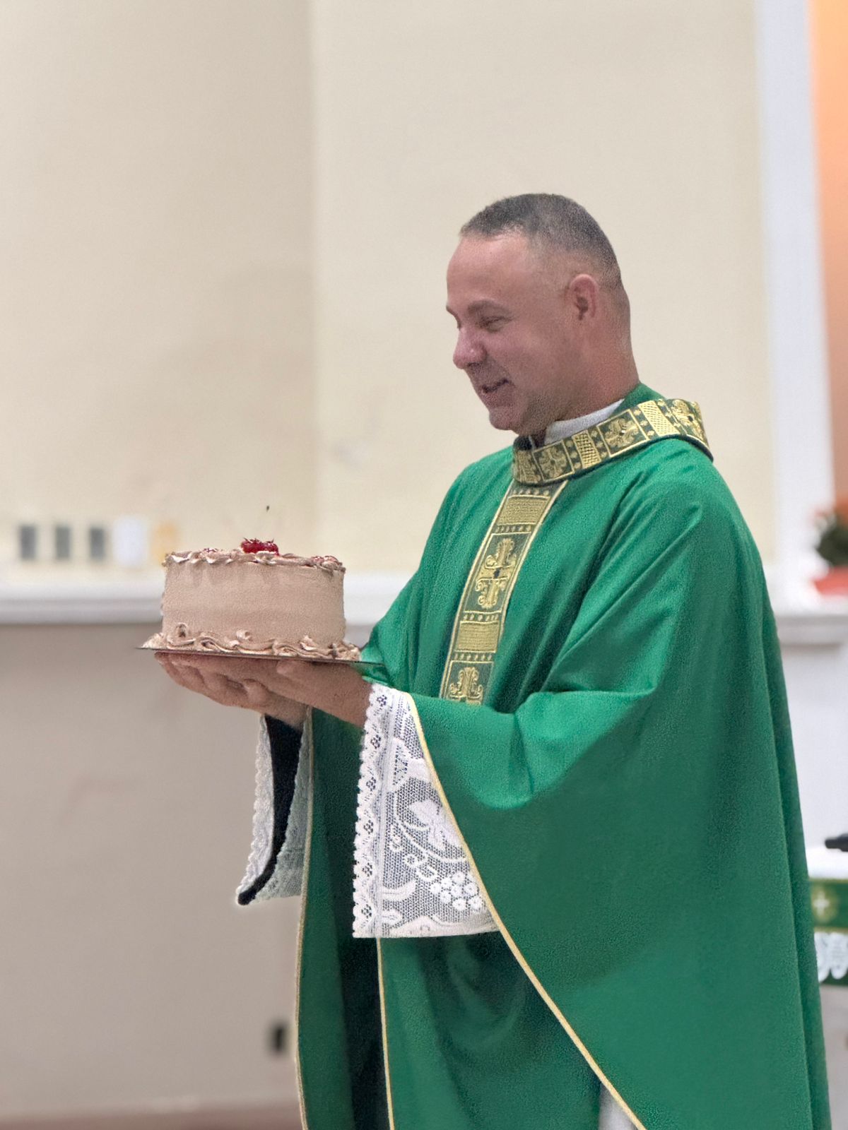 Neste sábado especial, ao comemorar um ano como padre, ele recebeu homenagens, o carinho da comunidade — e, claro, um bolo de chocolate, símbolo da história que deu início a tudo.