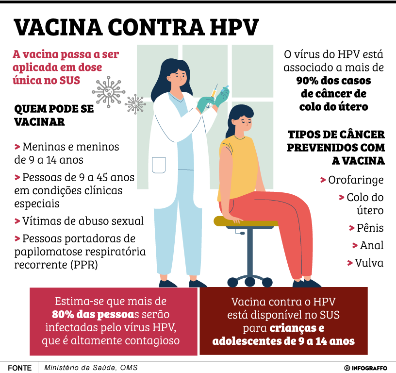 Segundo o Ministério da Saúde, existem mais de 200 tipos de HPV, alguns dos quais podem causar verrugas genitais, enquanto outros estão associados a tumores malignos, como o câncer do colo do útero, ânus, pênis, boca e garganta. Atualmente, como prevenção, o Brasil tem como público-alvo da vacinação as crianças e adolescentes entre 09 e 14 anos, estendendo a vacinação pelo SUS também para os jovens com até 19 anos que não estejam com o esquema vacinal completo.