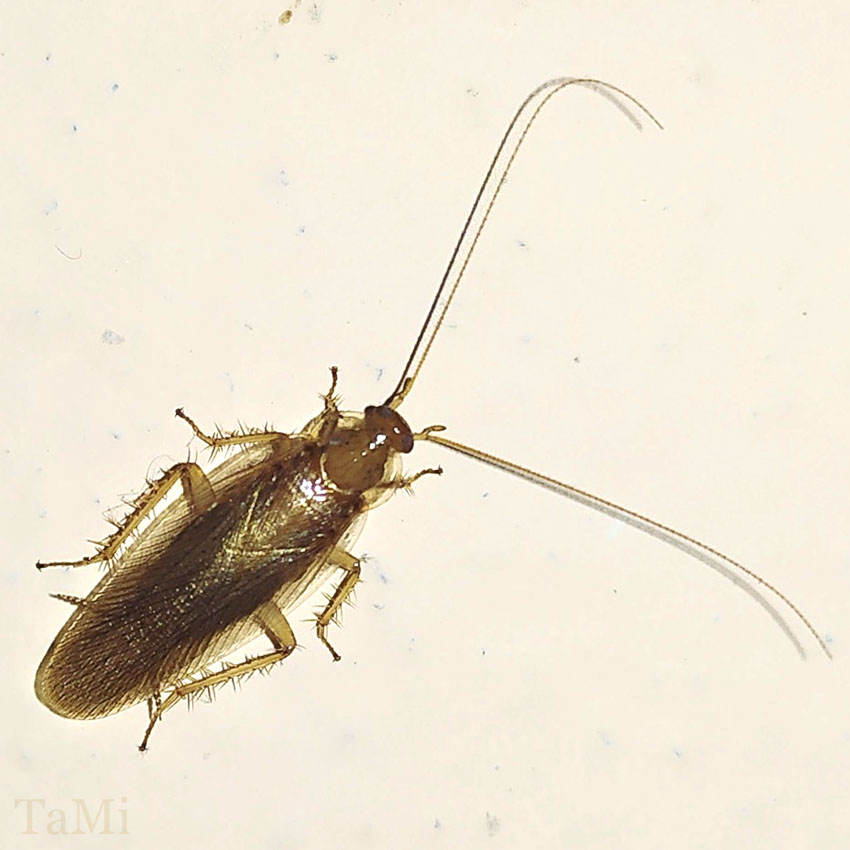Barata-germânica (Blattella germanica) – pequena, comum em cozinhas.