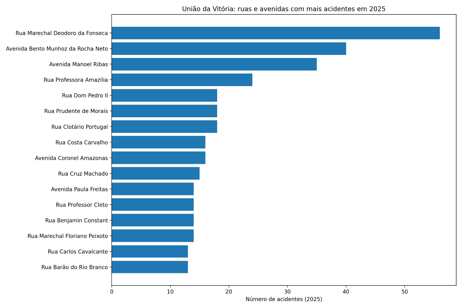 O trânsito de União da Vitória segue exigindo atenção redobrada de motoristas e pedestres. Dados divulgados pela Polícia Militar apontam que, somente em 2025, foram registrados 476 acidentes no município. Do total, 365 ocorrências não tiveram vítimas, enquanto 111 acidentes deixaram pessoas feridas. Ao longo do ano, 134 pessoas sofreram ferimentos, com registro de um óbito no local e um óbito posterior ao sinistro.
