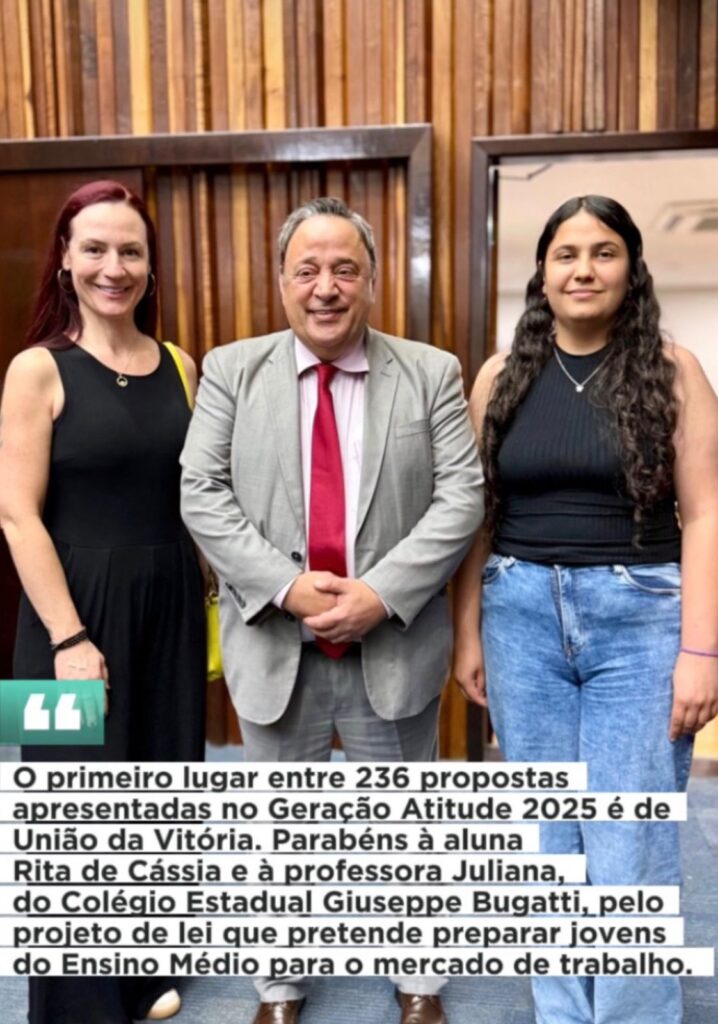Uma conquista que nasceu em sala de aula, em União da Vitória, acaba de se transformar em política pública para todo o Paraná. O projeto Orienta Paraná, idealizado pela professora Juliana Pessi Mayorca e pela estudante Rita de Cássia Lesnhak, do Colégio Estadual Padre Giuseppe Bugatti, foi aprovado por unanimidade na Assembleia Legislativa do Paraná e agora segue para sanção governamental.