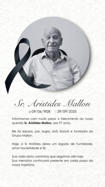 Em nota oficial, o Grupo Mallon prestou homenagem: “Ele deixa um legado de humildade, amor, honestidade e fé. Sua visão abriu caminhos que seguimos até hoje. Sua memória continuará presente em cada passo da nossa trajetória.”