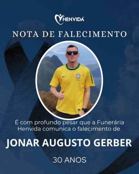 Segundo a Funerária Henvida, o corpo do rionegrense Jonar Augusto Gerber, de 30 anos, será velado na Capela Municipal de Rio Negro, a partir das 22h30 desta sexta-feira. O sepultamento será neste sábado, 17, às 16 horas, no Cemitério Municipal de Rio Negro. Ele deixa enlutados pais, namorada, tios, tias, primos, afilhados e demais familiares e amigos.