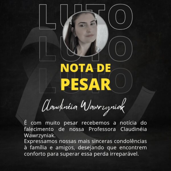 “Manifestamos nosso nosso profundo pesar pelo falecimento de Claudineia Wawrzyniak. Jovem educadora que deixou sua marca de afeto, responsabilidade e amor pela educação pública. Que Deus conforte o coração de sua família e amigos neste momento difícil.“