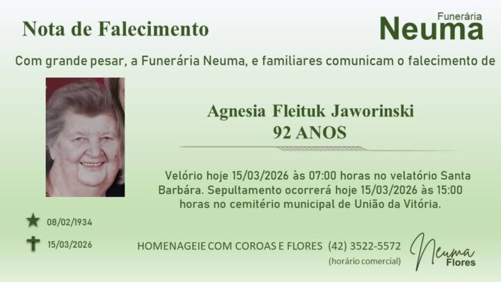 Agnesia Fleituk Jaworinski 16/03/2026 - 07h30 · Atualizado há 10 horas Sugira uma correção Fique sempre atualizado Entre no nosso grupo do WhatsApp e siga nosso perfil no Instagram para não perder nenhuma notícia! Grupo do WhatsApp Instagram