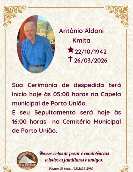 Antônio Aldoni Kmita 26/03/2026 - 09h51 · Atualizado há 8 horas Sugira uma correção Fique sempre atualizado Entre no nosso grupo do WhatsApp e siga nosso perfil no Instagram para não perder nenhuma notícia! Grupo do WhatsApp Instagram