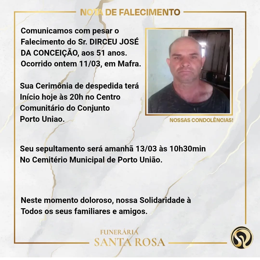 Dirceu José da Conceição 13/03/2026 - 09h19 · Atualizado há 5 horas Sugira uma correção Fique sempre atualizado Entre no nosso grupo do WhatsApp e siga nosso perfil no Instagram para não perder nenhuma notícia! Grupo do WhatsApp Instagram