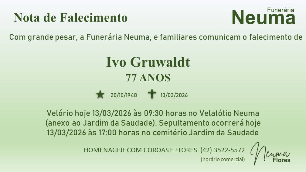 Ivo Gruwaldt 14/03/2026 - 09h01 · Atualizado há 8 horas Sugira uma correção Fique sempre atualizado Entre no nosso grupo do WhatsApp e siga nosso perfil no Instagram para não perder nenhuma notícia! Grupo do WhatsApp Instagram