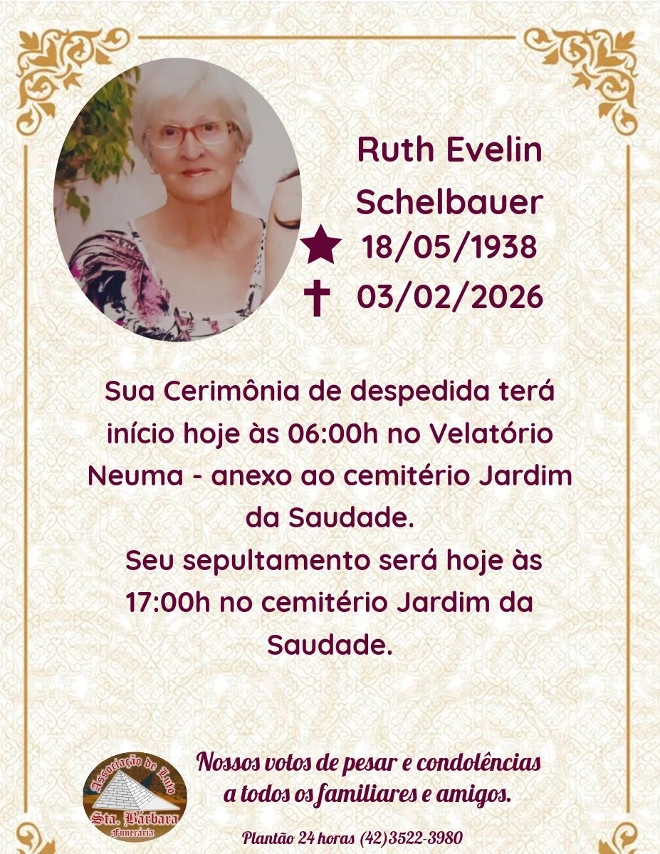 Ruth Evelin Schelbauer – 03 de fevereiro 05/02/2026 - 11h05 · Atualizado há 3 semanas Ruth Evelin Schelbauer Sugira uma correção