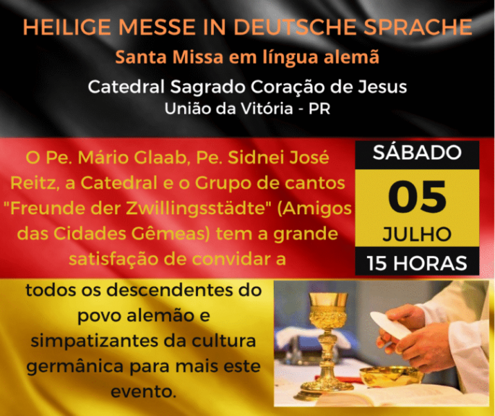 A Catedral Sagrado Coração de Jesus, em União da Vitória, será palco de uma celebração especial no dia 5 de julho, às 15h: uma missa totalmente rezada e cantada em língua alemã. A iniciativa busca resgatar e valorizar as tradições germânicas presentes na história e na fé da comunidade local.