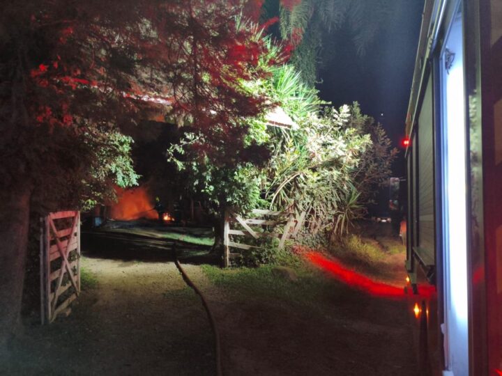 Um incêndio de grandes proporções mobilizou o Corpo de Bombeiros na noite da última quinta-feira, 26 O sinistro ocorreu na localidade de Caçadorzinho, no distrito de Santa Cruz do Timbó, interior do município.
