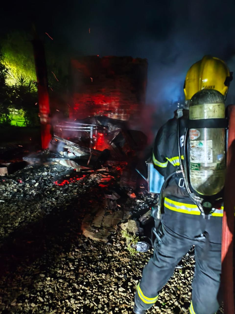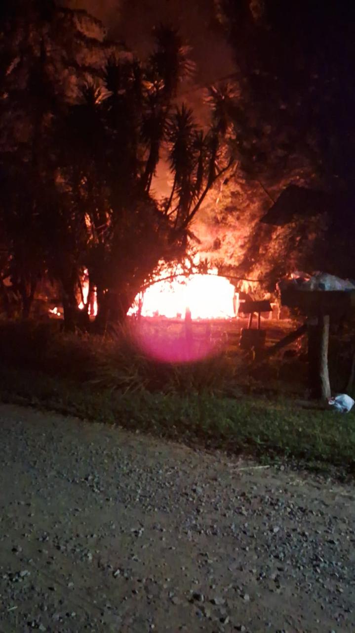Um incêndio de grandes proporções mobilizou o Corpo de Bombeiros na noite da última quinta-feira, 26 O sinistro ocorreu na localidade de Caçadorzinho, no distrito de Santa Cruz do Timbó, interior do município.