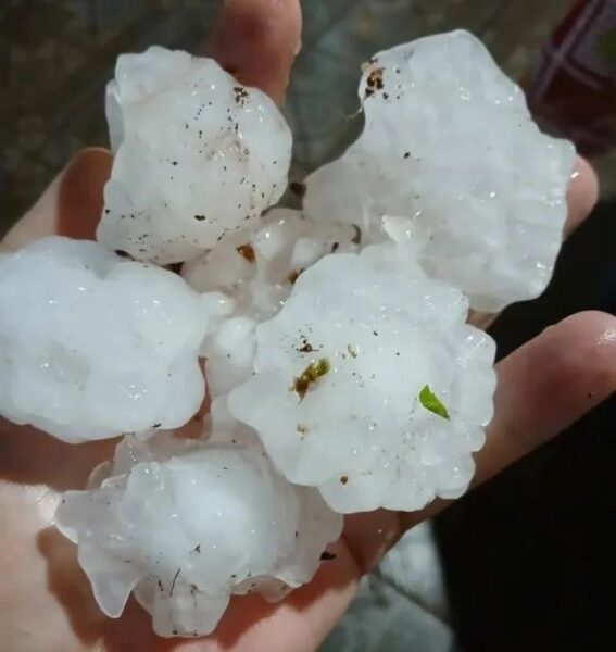 Moradores registraram momentos de pânico enquanto pedras de gelo, em alguns casos do tamanho bem grande, caíam com intensidade sobre telhados, e veículos do distrito.