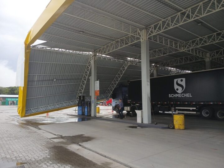 A cobertura cedeu de forma gradual e atingiu um caminhão que estava em abastecimento. Ninguém ficou ferido, e o motorista recebeu atendimento imediato da equipe.