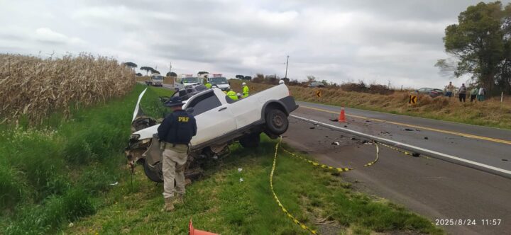 Na manhã deste domingo (24), por volta das 11h, um grave acidente foi registrado no km 204,6 da BR-373, em Ipiranga. A colisão frontal envolveu uma Fiat Strada, de União da Vitória, e uma Renault Duster, de Ponta Grossa.
