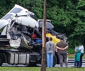 Bebê de 8 meses morre após colisão entre caminhões na BR-476