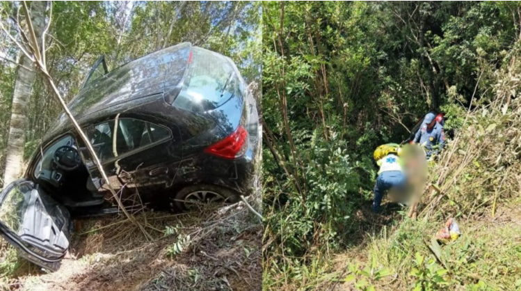 O desfecho começou por volta das 12h25, quando moradores procuraram o quartel dos bombeiros informando ter visto um veículo Chevrolet Onix preto em meio à vegetação densa. O carro estava a cerca de 10 metros abaixo do nível da pista, em uma ribanceira íngreme, após colidir frontalmente contra uma árvore.