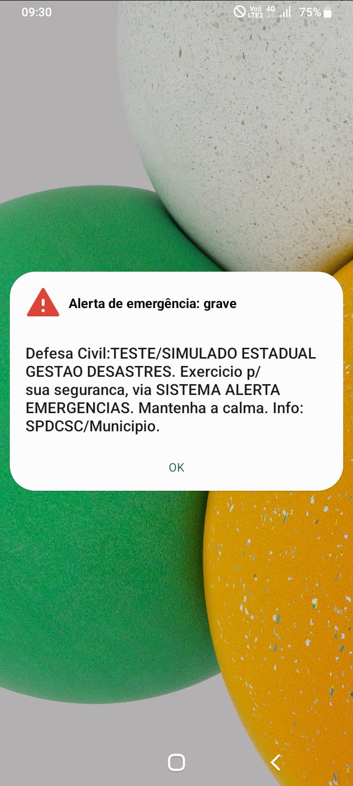 Segundo a Defesa Civil, o envio de mensagens por meio do sistema Cell Broadcast — que transmite alertas diretamente para celulares em uma determinada área — foi realizado como parte do teste e não indica qualquer ocorrência real de evento extremo na região. As autoridades orientam que as pessoas mantenham a calma caso recebam esse tipo de alerta em seus dispositivos.