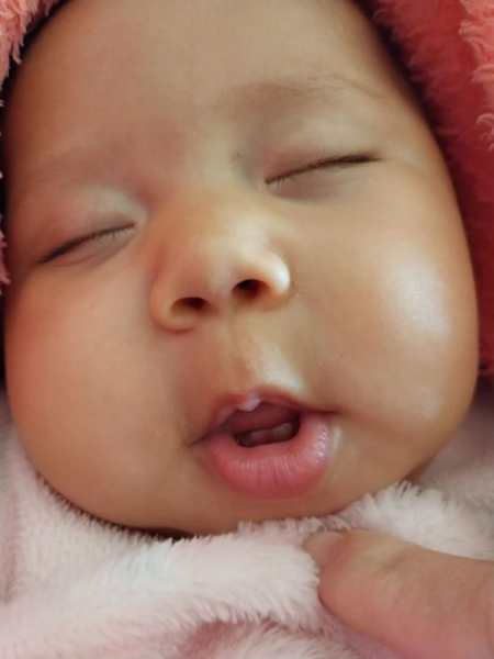 Agatha e a família residem no Lageado, interior de São Mateus do Sul. A pequena nasceu no dia 23 de março de 2023, com 2,685 kg, 46 cm e dois dentinhos. A mãe disse que segue acompanhando o desenvolvimento da filha com pediatras e que ela ainda continua com os dois dentinhos, que viraram sua ‘marca registrada’.