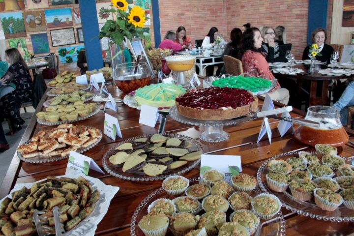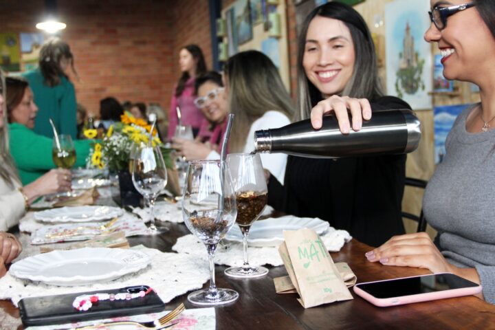 O Chá trouxe um menu especial. Foram servidos bolos, pães e tortas, além do chá, tendo a erva-mate como matéria-prima principal, e no fim uma novidade especial que surpreendeu a todos: a caipirinha de erva-mate! Conforme a empresária, a ideia do evento foi apresentar as variáveis de inserção do produto. “Podemos ir muito além do chimarrão”, destaca. O Chá da Rainha reuniu homens e mulheres amantes do protagonismo regional e multiplicadores das possibilidades para a planta. Ainda, contou com exposição de artistas plásticos locais, música ao vivo, sorteios de brindes e muito networking.