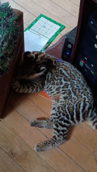 Moradora relata como encontrou filhote de jaguatirica dentro de casa