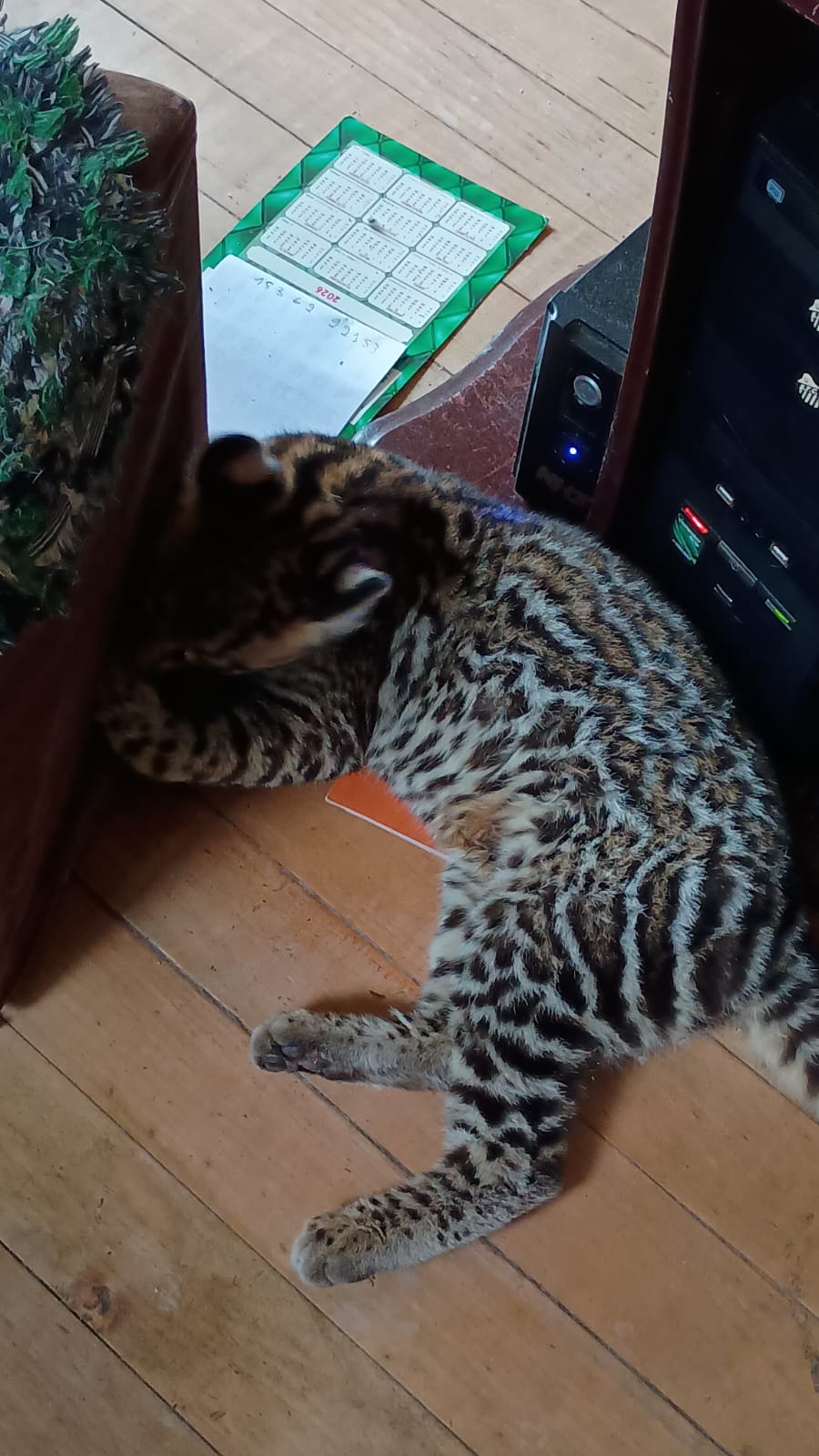 “É um jovem de jaguatirica que precisará passar por um processo longo e delicado de reabilitação. O contato prolongado com humanos prejudica habilidades essenciais, como caça e defesa. Manter animal silvestre em casa é crime ambiental”, explicou.