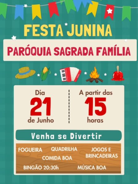 A festa terá início a partir das 15h, oferecendo uma tarde e noite completas de entretenimento. Os participantes poderão desfrutar de uma tradicional fogueira, quadrilha, comidas típicas deliciosas, diversos jogos e brincadeiras, além de muita música boa para animar o ambiente.